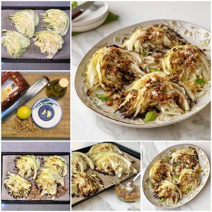 Kavrulmuş cevizli, sarımsaklı ve limonlu sosun çok yakıştığı fırınlanmış lahana dilimlerini tek başına hafifi bir öğün veya ana yemek öncesi iştah açıcı olarak yapabilirsiniz.