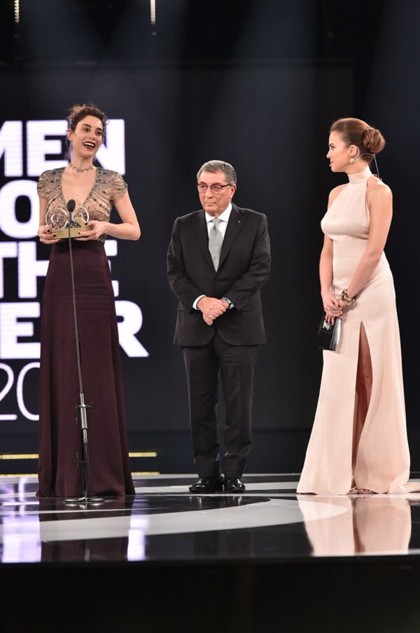 Beren Saat, 'Men of the Year'ın en çok konuşulan ismi oldu. Uzun süredir ekranlardan ve beyazperdeden uzak olan güzel oyuncu, geceye Özgür Masur imzalı derin göğüs ve bacak dekolteli şeffaf yeşil elbisesiyle katıldı. Ozan Açıktan'a 'Yılın Yönetmeni Ödülü'nü veren Saat, güzelliğinin yanı sıra sempatik tavırlarıyla da dikkat çekti.