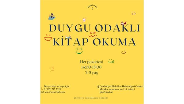 Çocuklarımız duygularını tanıyor mu, çocuklarımız duygularını ne kadar ifade edebiliyor? Duygular üzerinde konuşabilmeyi çocuk kitapları aracılığıyla yapan bu atölyeye 10 Ekim tarihinde katılmak için Biletino websitesini ziyaret edebilirsiniz.