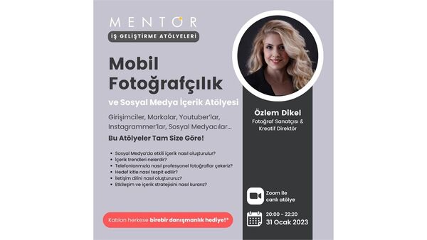 Fotoğraf çekmekten hedef kitle belirlemeye kadar birçok konuda fikir sahibi olabileceğiniz atölyeye sosyal medya kullanımına yönelik merakınız varsa katılabilirsiniz. 31 Ocak'taki etkinlik Zoom üzerinden saat 20.00'de gerçekleşecek.