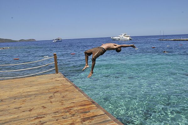 Yakışıklılığı ve yaptığı artistik atlayışlarla ilgi odağı olan Meeks, "Bodrum'u çok sevdim. Tatil için tekrar geleceğim" diye konuştu.