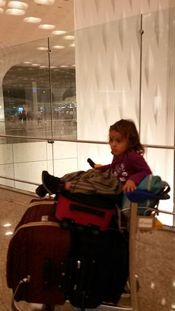Kızımın çok uykusu geldiğinden sakin ve az ışıklı bir yerde beklemek istedim ve dolaşmaya başladım, şansa vip lounge kısmına giderken, bir bebek bakım odası buldum, kafamı içeri uzattım, içerde odalar, odalarda uyuyan çocuklar, emziren anneler, geniş ve güzel aynalar, bakım ürünleri, lavabolar... Koskoca havaalanı arabam ve bavullarımla girdim içeri. Ohhh dedim dünya varmış, kızı attım divana, hemen uyudu, bense uyuyamam, malum check in yapılacak, pasaport kontrolünden geçilecek, uçağa binmek de bir iş. Gece 04:30 gibi kızımı uyandırmak zorunda kaldım. Yolculuğun en sevmediğim kısmı bu; kızım uyanmaktan hiç hoşlanmıyor…