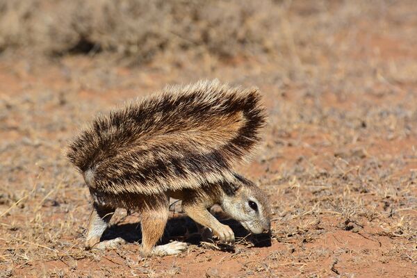 Cape yer sincapları geniş kuyruklarını şemsiye gibi kullanarak kendilerine gölgelik oluşturur.