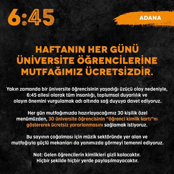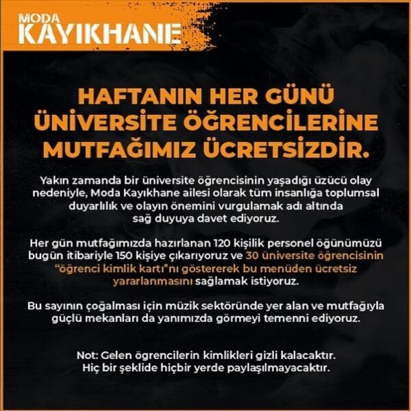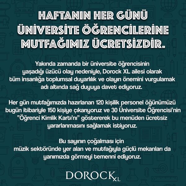 20 yaşında olan Sibel Ünli'nin aramızdan acı bir şekilde ayrılmasından sonra Dorock XL adlı eğlence mekanı durumu olmayan üniversite öğrencileri için ücretsiz yemek kampanyası başlattı. Her gün çıkan 120 kişilik personel öğünlerini 150 kişiliğe çıkarttılar ve 30 öğrenciye ücretsiz yemek imkanı sunmaya başladılar. Üniversiteli öğrenciler, öğrenci kimliklerini göstererek kampanyadan yararlanabilirler.