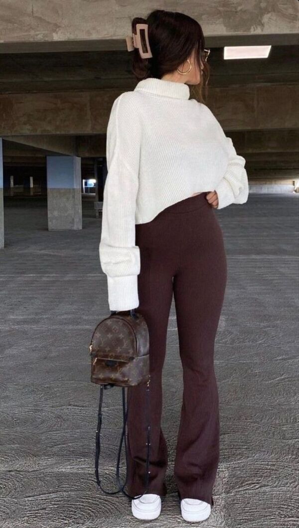 Soğuk havalarda İspanyol paça taytları kullanmanın en iyi yolu sweatshirt ve boğazlı kazaklardır. Bizce ikisini birleştirirseniz harika bir kombin elde edebilirsiniz.