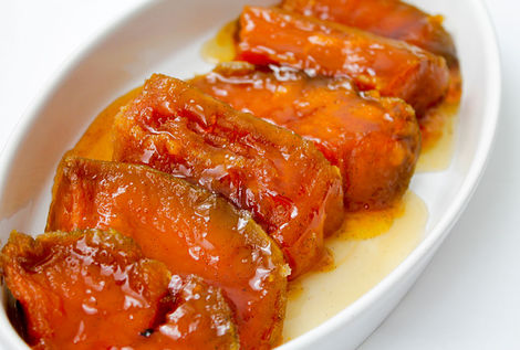 Dilimlenmiş balkabaklarının yeşil kalan kısımları ayrılır. Hem fırına hem de ateşe uygun tencerenin içine tek sıra halinde dizilirler, üstü tamamen şeker ile örtülür, vanilya konur ve bir gece boyunca buzdolabında bekletilir.