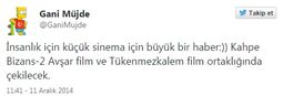 Gani Müjde'nin twitter hesabından duyurduğu üzere film, Tükenmezkalem Film ve Avşar Film ortak yapımı olacak. Filmin senaryosu ya da oyuncu kadrosu ile ilgili henüz bir açıklama yapılmadı.