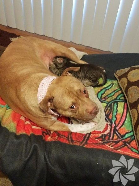 Pitbull cinsi köpek Akasha'nın hiç yavrusu olmadı ama annelik içgüdüsüne sahip olduğunu gösteren bir olay yaşandı. Bir gün, Akasha'nın sahibi küçük bir kedi yavrusunu kurtardı ve eve aldı. Aradan çok geçmeden, köpeğini yavru kediyi emzirirken buldu.
