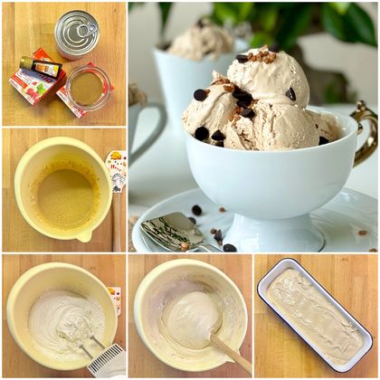 Dondurma makinesine ihtiyaç duymadan sadece dört malzeme ile kısa sürede yapabileceğiniz dondurmayı yoğunlaştırılmış süt ile tatlandırıyoruz, ekstra şekere ihtiyaç duymadan krema, kahve ve vanilya özütü ilavesiyle hazırlayıp dondurucuda bekletiyoruz, hepsi bu kadar…