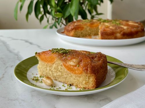 Ön pişirme yapmadan tek kalıpla kolaylıkla yapabileceğiniz esmer şeker ve taçınla karamelize olan bademli kayısıların çok yakıştığı nefis kek. Ayrıca kekin hamurundaki badem unu ve maden suyunun ipeksi doku kattığı alt-üst keki kayısı mevsimindeyken deneyin derim.