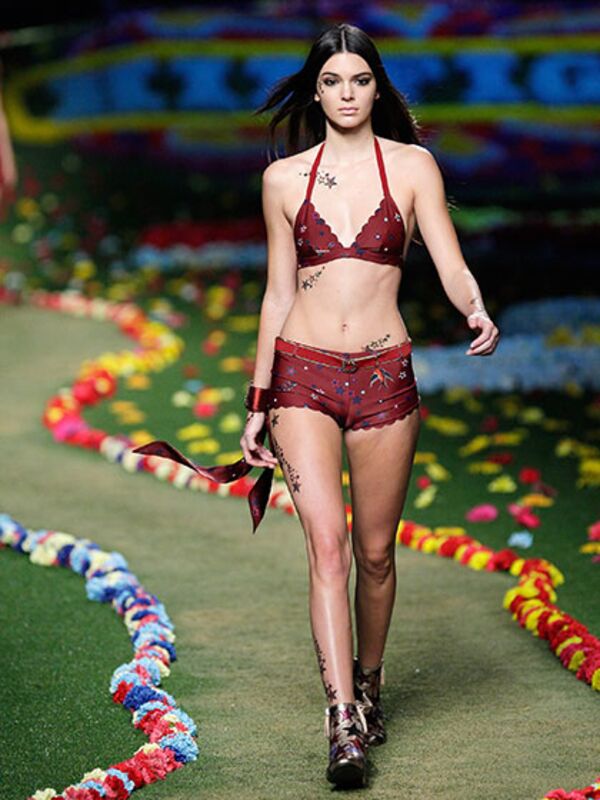 Kendall+Kylie markasının kampanya kapsamında çekilen fotoğrafların arasında en çok, Jenner'ın doğada sarı çiçekler arasında verdiği pozlar dikkat çekti. Bu seride Kendall Jenner, beyaz mayosuyla olay yarattı.