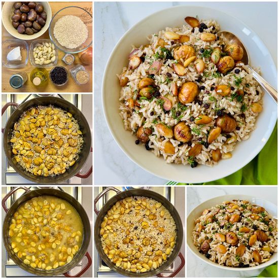 Yılbaşı ve davet sofralarına çok yakışan leziz kestaneli bademli pilav...