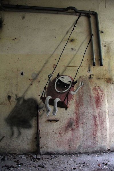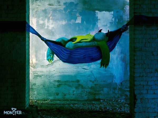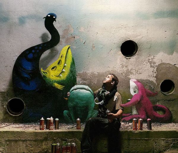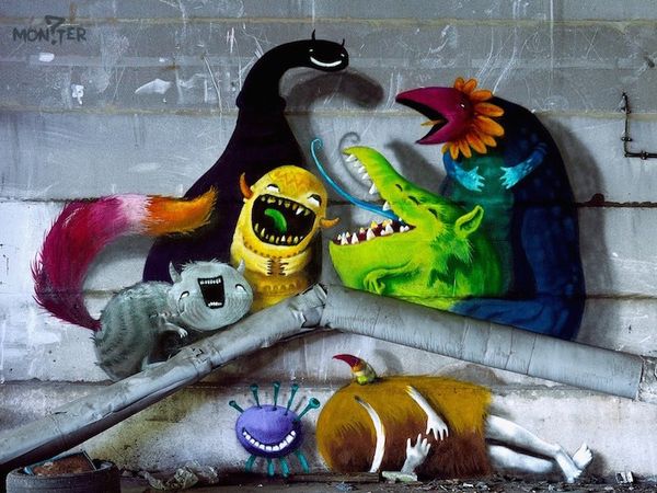 Sprey boya kullanarak kentin yıkık dökük binalarının duvarlarını canavarlarla dolduran sanatçının çalışmalarını Monzter adında interaktif bir çocuk kitabı halinde bulmak da mümkün.