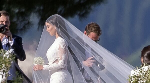 3. kez nikâh masasına oturan Kardashian, Givenchy imzalı bir gelinlik giydi.
