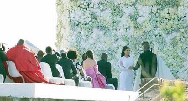 Floransa'ya tepeden bakan tarihi yapıda evlenen çiftin geçen yıl haziranda doğan kızları North da kendisine Givenchy tarafından dikilien beyaz bir kıyafetle anne-babasının mutlu gününe şahit oldu.