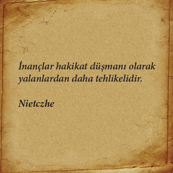 İnançlar hakikat dūşmanı olarak yalanlardan daha tehlikelidir.
