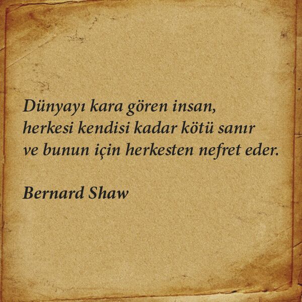 Dünyayı kara gören insan, herkesi kendisi kadar kötü sanır ve bunun için herkesten nefret eder.