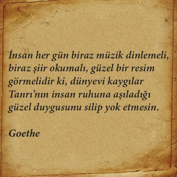 İnsan her gün biraz müzik dinlemeli, biraz şiir okumalı, güzel bir resim görmelidir ki, dünyevi kaygılar Tanrı'nın insan ruhuna aşıladığı güzel duygusunu silip yok etmesin.