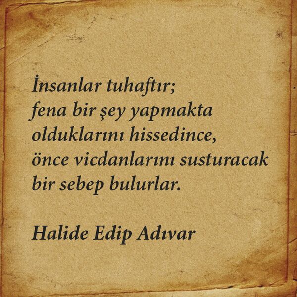 İnsanlar tuhaftır; fena bir şey yapmakta olduklarını hissedince, önce vicdanlarını susturacak bir sebep bulurlar.