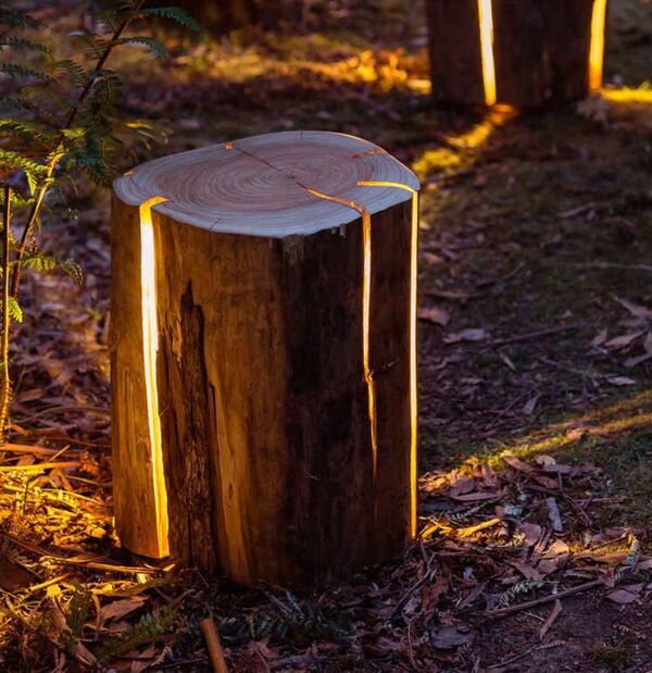 Kamplarda ortama ışık vermesi için tasarlanmış içinde ışıklar olan bir kereste.