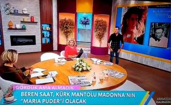 TV8’de yayınlanan "Aramızda Kalmasın" adlı programda, Türk edebiyatının usta kalemi Sabahattin Ali'ye ait 'Kürk Mantolu Madonna' adlı eserin beyazperdeye uyarlanacağı, Maria Puder karakterini ise Beren Saat'in canlandıracağı konuşulurken, sunuculardan Funda Özkalyoncuoğlu kitaptaki 'Madonna'yı ünlü müzisyen Madonna sandı.