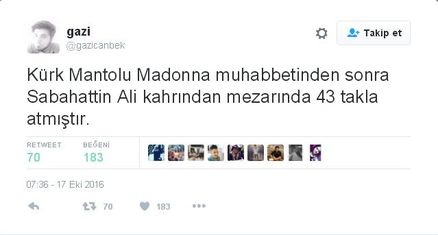 Çok geçmeden “Kürk Mantolu Madonna”, Twitter’da trend topic oldu.