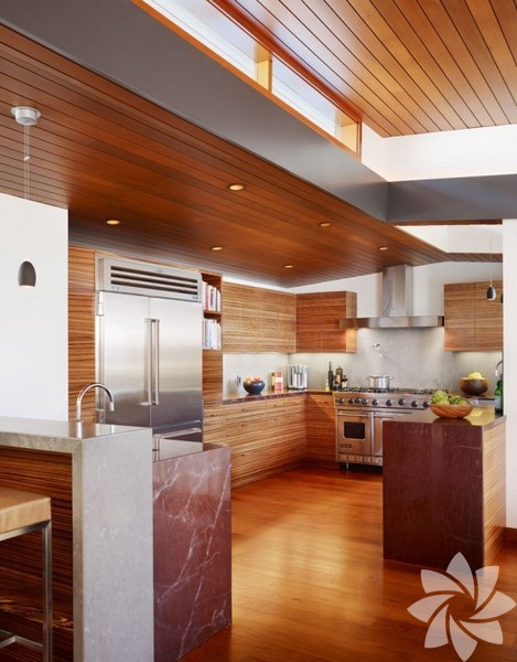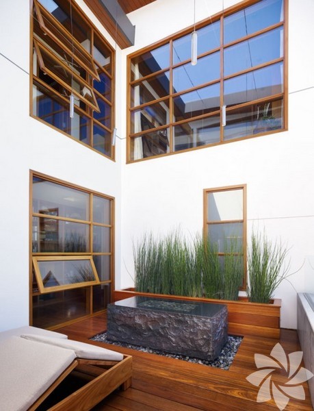 Pasifik Okyanusu ve Malibu sahilinin eşsiz manzarasına sahip bu ev, herkesin hayallerini süsleyecek cinsten. Her yeri en ince detayına kadar dikkatlice dizayn edilen evin resimleri, görenlerin aklını başından alıyor. Ev, 160 metrekare gibi oldukça küçük bir arsa üzerine konumlandırılmış. Buna rağmen bu küçük alana başarılı bir mimari ile bir de bahçe yerleştirilmiş. Bu bahçe binanın tam ortasında küçük bir yeşil alana açılıyor. Bahçenin bir tarafı çocuk odası, bir tarafı da banyolu ebeveyn odasına açılıyor. Bahçe, Zen felsefesine uygun düzenlerek evle iç içe olması sağlanmış. Aynı zamanda fazlaca kullanılan ahşap malzemeler ile doğal görünüm elde edilmiş ve evin hem şık hem de çok rahat bir görünüm kazandırmış. Evde kullanılan geniş pencereler sayesinde içeride aydınlık bir ortam sağlanmış. Evin terasına yapılan şömine ise görenleri kıskandıracak kadar güzel.