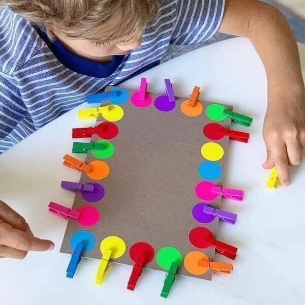 Mandalları, aynı renkteki kağıt ya da kumaşlara tutturmasını isteyin. Bu oyun, renkleri tanımasına yardımcı olur ve el kaslarını çalıştırır.