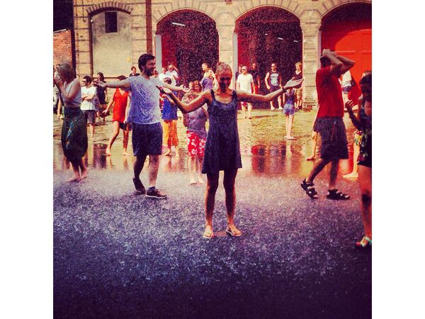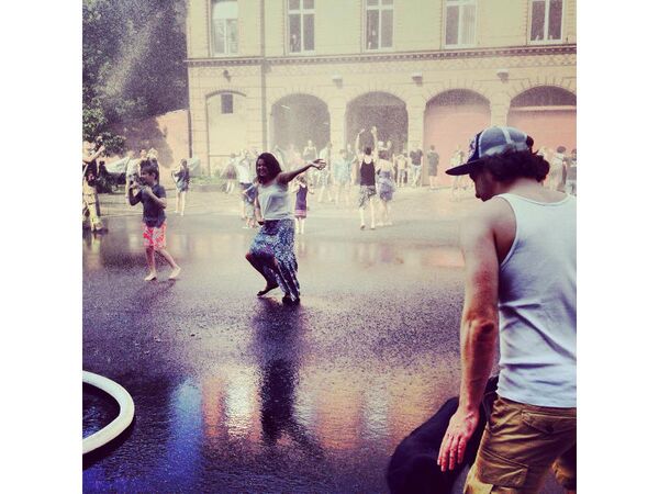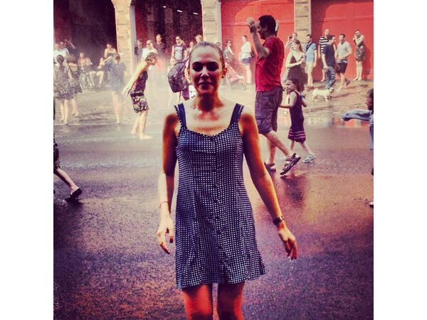 Uzerli, "Bizi serinleten Berlin İtfaiyesi'ne teşekkür ederim" notu ekleyerek sırılsıklam olmuş halde fotoğraflarını Instagram'da paylaştı.
