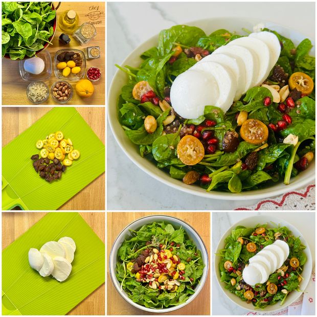 Meyveli mozarellalı ıspanak salatası