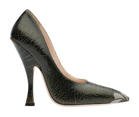 Miu Miu, feminen zarafeti tamamlayan “Craquele” koleksiyonu ile dikkat çekiyor. Renkli boyayı çatlatarak elde edilen malzeme ile üretilen ayakkabı ve çantaların deri yüzeyleri sofistike ve yıllanmış görünümü veriyor. Aksesuarlar kırmızı, pembe ve siyah renklerinin karışımıyla kombine ediliyor.