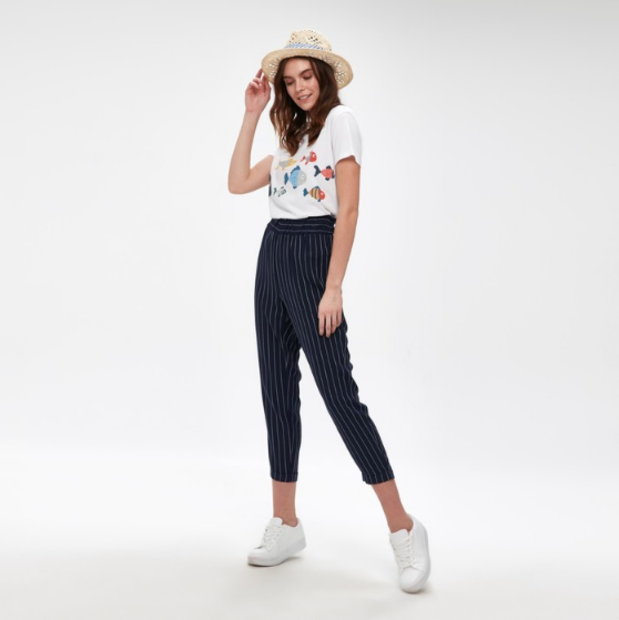 Sezonun en dikkat çeken deseni olan çizgiler, özellikle tişörtlerde göze çarpıyor.