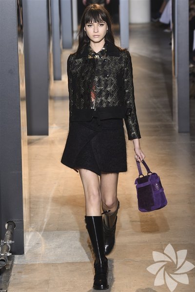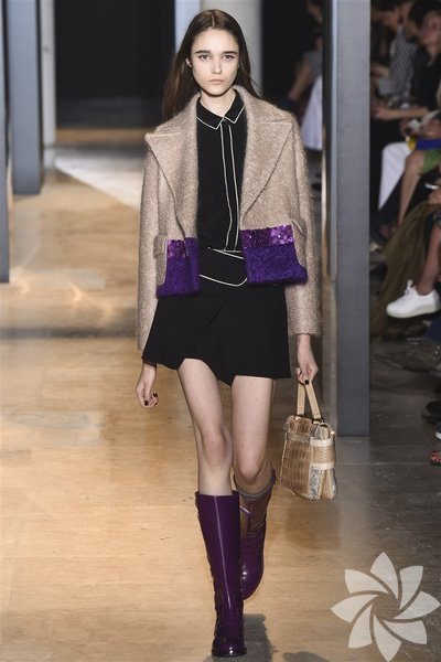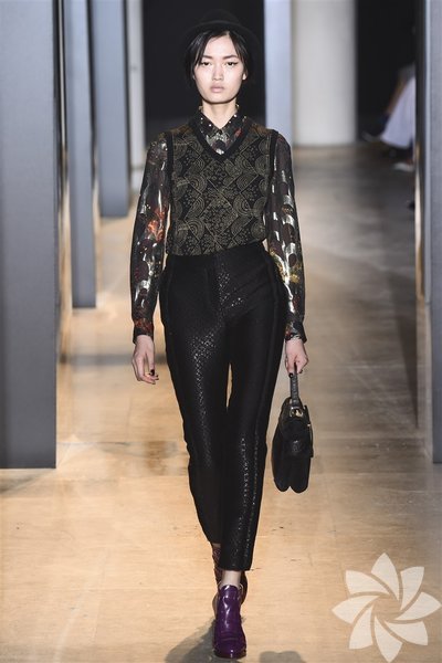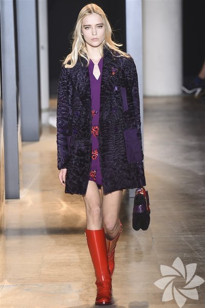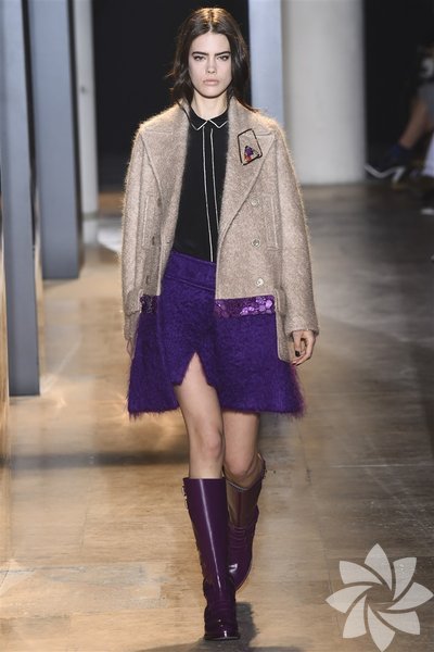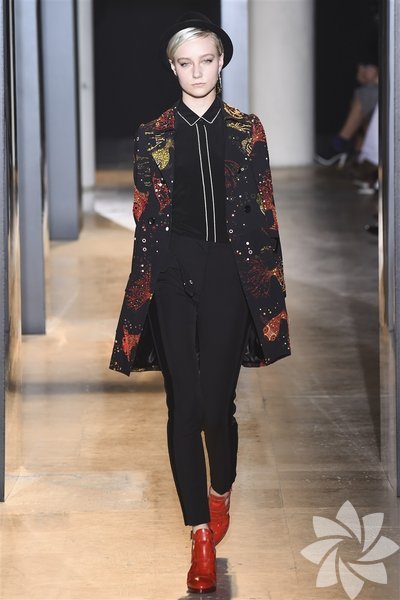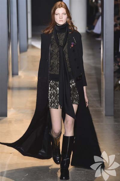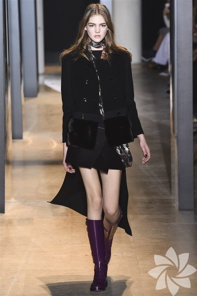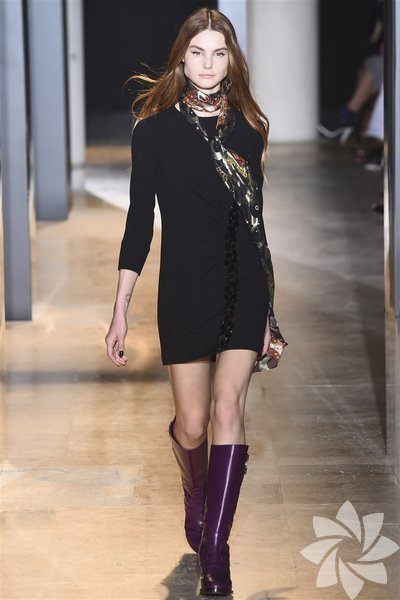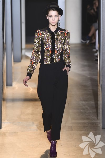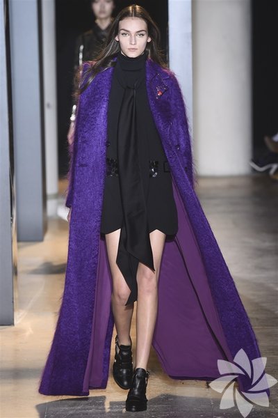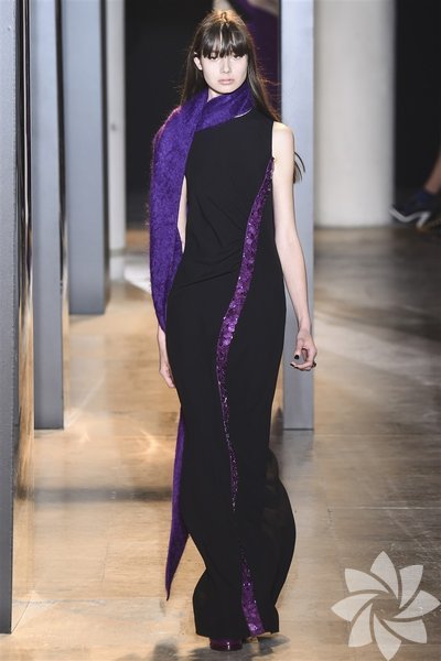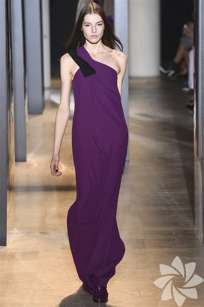 John Galliano'nun 2015 koleksiyonunda siyah, mor ve nar çiçeği tonları yeni stil kodlarını oluşturuyor.