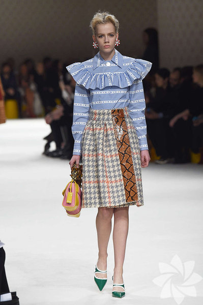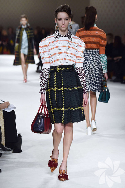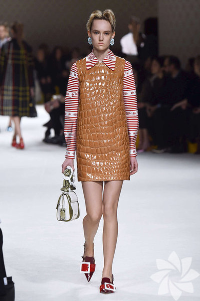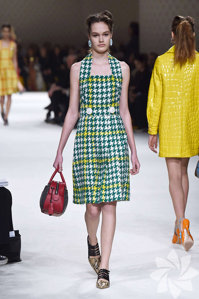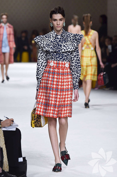 Sonbaharı canlı renklerle karşılayan Miu Miu, bu koleksiyonunda deri, desenli ve pötikare kumaşları ön planda tutuyor.
