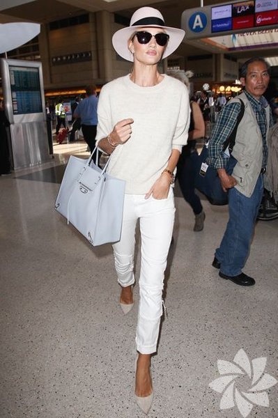 İngiliz model Rosie Huntington-Whiteley güzelliğinin önüne geçmeyecek parçalar giymeyi tercih ediyor. Feminen görünümünden ödün vermemek için havaalanına giderken bile topuklularından vazgeçmiyor.