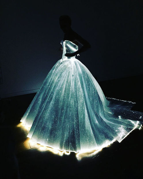 Elbise, Fransa'dan düzenlenen dokuma fiber optik kaynaklı ve önlük alt yapısı içine dikili 30 mini pil paketlerinden oluşmaktadır.
