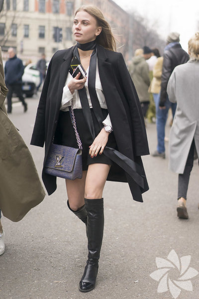 Asimetrik kesim mini eteği bootielerle tamamlayabilirsiniz.