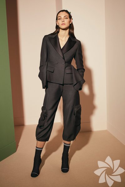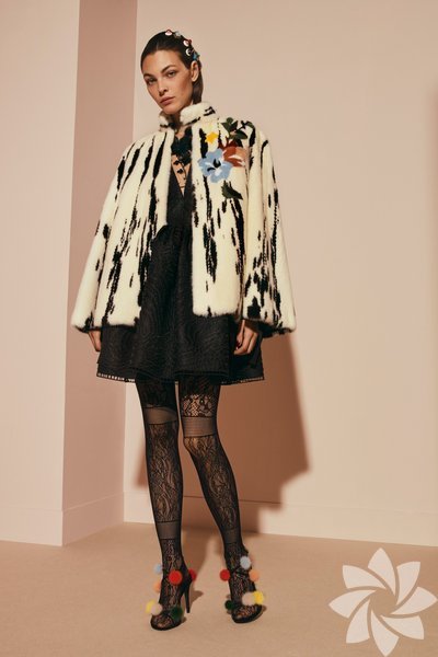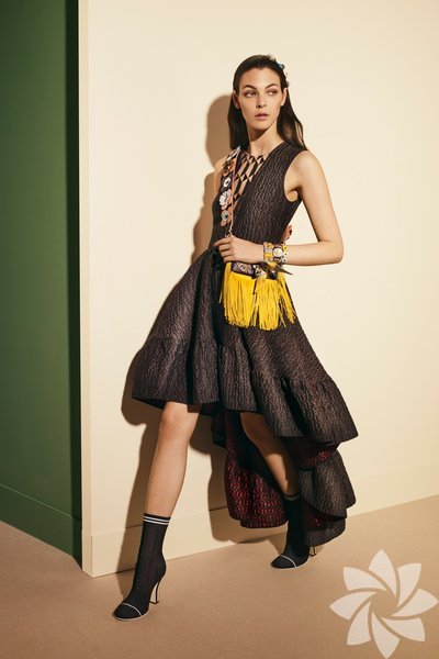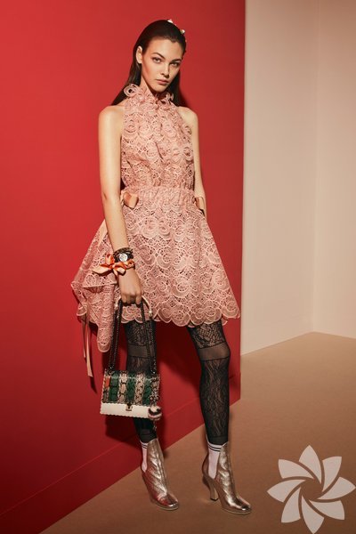 Tasarım Fendi çantalar koleksiyonun en etkili parçalarından olsa da kürk, tül, dantel gibi detaylarla tepeden tırnağa kusursuz görünüyor.