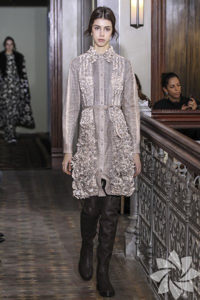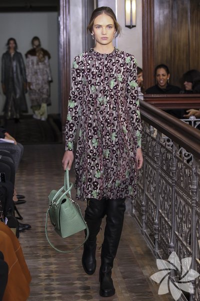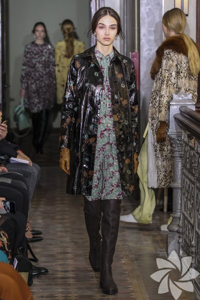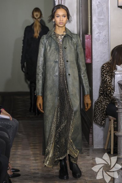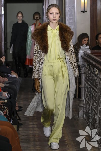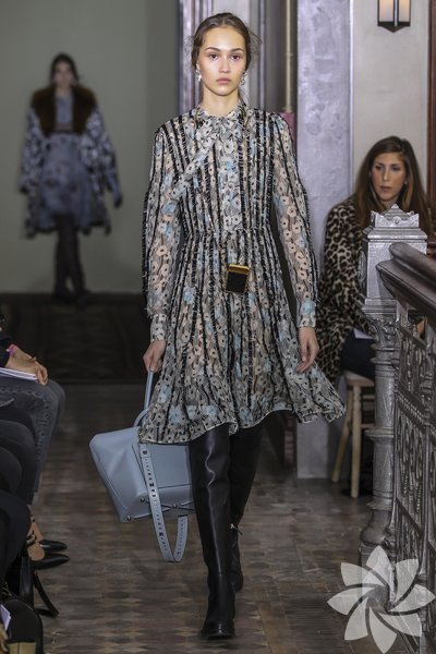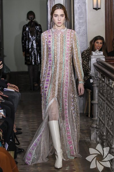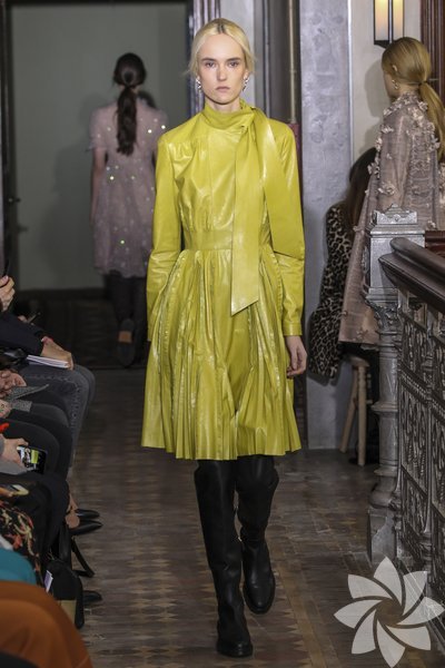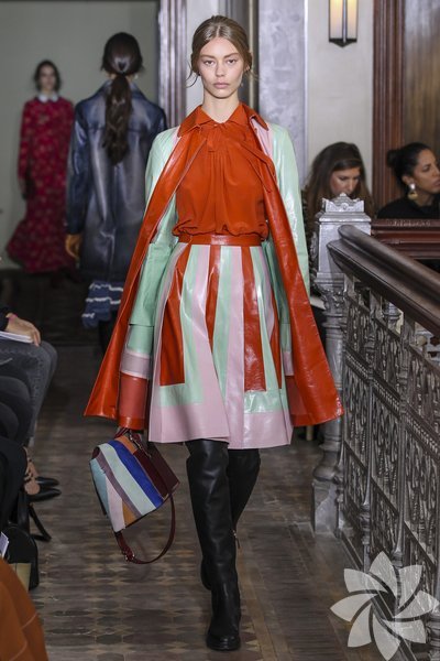 Parlak yılan derisi parçalar kullanılırken pastel tonlarıyla iyi bir geçiş sağlanıyor. Koleksiyonda romantik hava hakim.