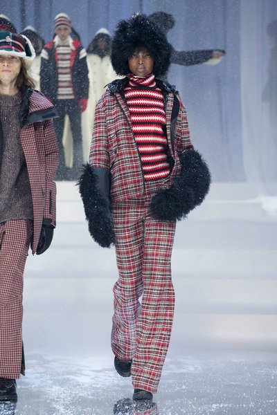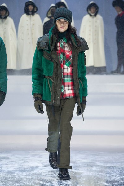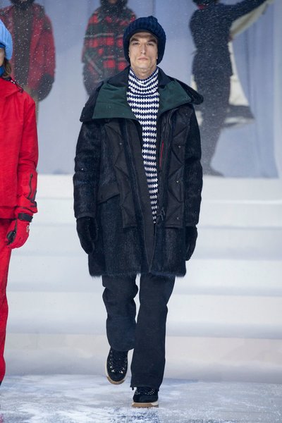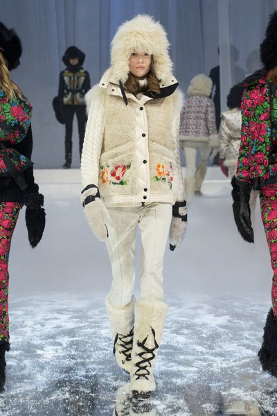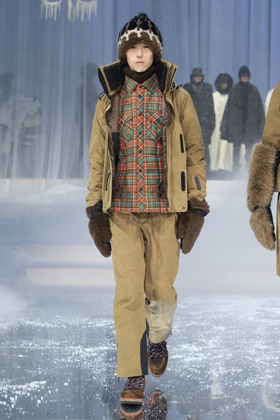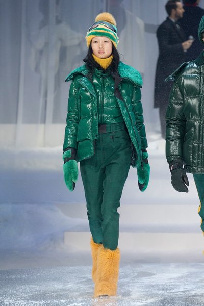 Kayak sezonunun en çok tercih edilen markası Moncler bu sezon kürklerin yanı sıra yün kumaşlarında yer aldığı kare ve kaz ayağı desenleri de koleksiyonda kullanıyor.