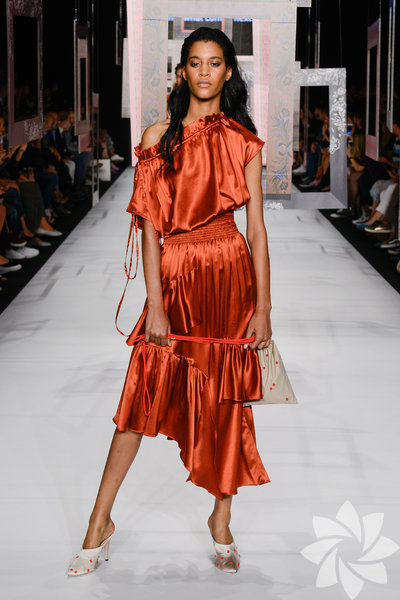 Koleksiyondaki hacimli ve sert kumaşlar cesur ve iddialı kadınları işaret ederken, volanlar ve drapeler ise herkesin içindeki romantik yöne hitap ediyor. 5 / 50