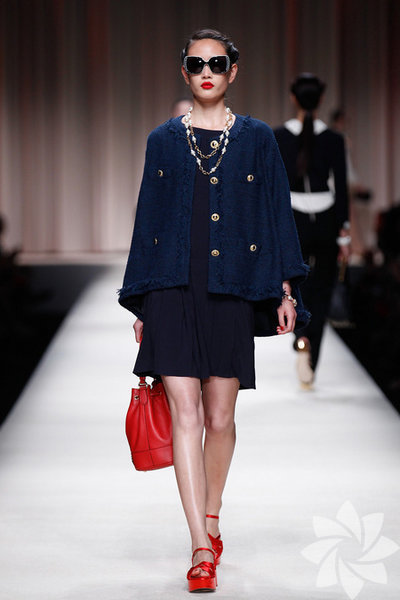 Moschino Resort 2014 için tasarlanan kıyafetler iş hayatı, günlük spor şık ve gece çıkarken rahatlıkla giyilebilecek tarzda.