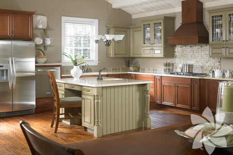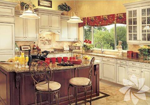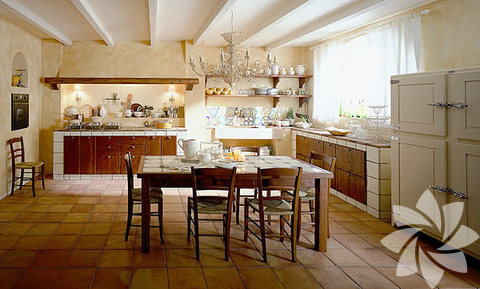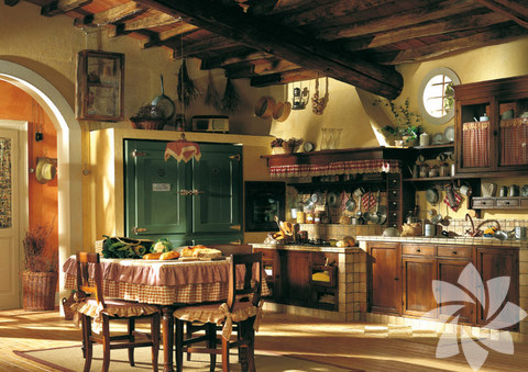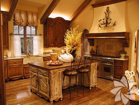 Ağırlıklı ahşap malzemelerin kullanıldığı bu mutfaklar evinizde loş ve huzurlu bir ortam yaratmanız için birebir... Kullanılan krem, koyu yeşil ve bordo tonlarıyla hareketlendirilen ahşaplar mutfağınızda doğayla iç içe bir görüntü yaratıyor. Genelde yazlıklar da ya da dağ evlerinde tercih edilen bu stilde, bulunduğu yerin durumuna göre şömine detayına yer verilerek farklılık yaratılabiliyor.