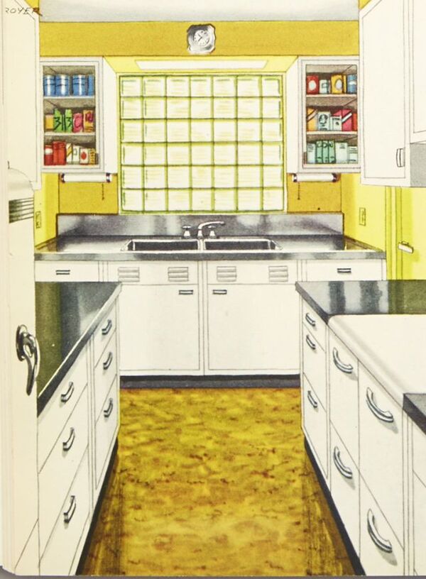 Renkli dekorasyon 50'lere kadar çok popüler olmasa da bazı tasarımcılar ufak oyunlarla işe renk katıyordu. Geniş ikili lavabolar ve soğutucular da mutfakların vazgeçilmeziydi.