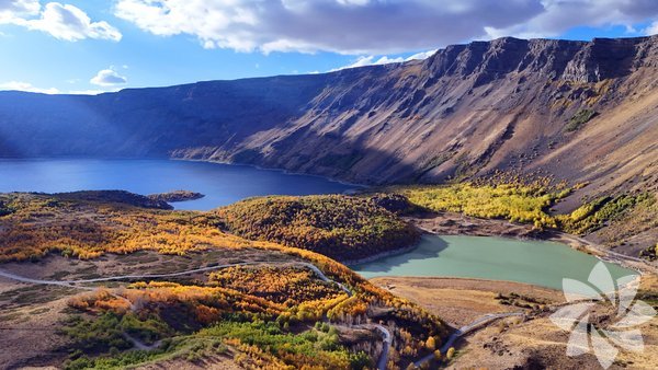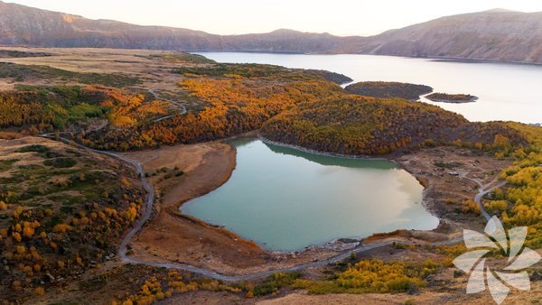Avrupalı Seçkin Destinasyonlar Projesi (EDEN) kapsamında "Mükemmeliyet Ödülü" alan Nemrut Krater Gölü'nün ve kalderasının havadan çekilen görüntülerinde sonbahar mevsiminin tüm tonları görsel şölen oluşturuyor.