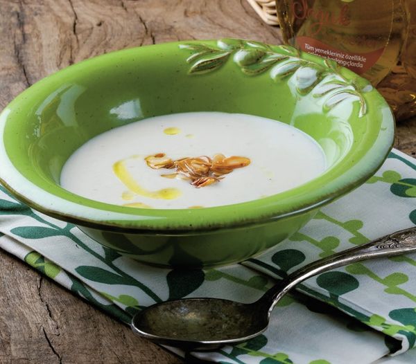 Bu yemek Şah Cihangir ve Beyazıd’ın 1539’da Edirne’de düzenlenen sünnet töreni ziyafetinde yer almış. Haşlanıp yumuşatılmış bademleri havanda dövün. Tencerede tereyağı ve unu karıştırıp kavurun, üzerine yeterince süt, su ve badem ilave ederek bir taşım kaynatın. Pişmesine yakın hindistancevizi ekleyip altını kapatın. Diğer tarafta tereyağını eritip et suyu ve maydanozla karıştırın ve çorbanın üzerine dökerek servis edin. Orijinal tarifte üzerine nar taneleri de serpilir.