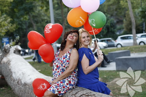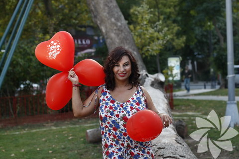 Benim de çocuklukta ve delilikte kendisinden geri kalır yanım yok hani! Buluşmamızdan bir gece önce koydum bir torba rengârenk balonu önüme, hepsini tek tek şişirip bir sopaya bağladım. Ertesi gün elimde arabaya zor sığan balonlarımla Bebek Parkı’ndaydım. Nilgün Belgün’ü beklerken kaç çocuk yanıma gelip, “Abla bana balon verir misin?” dedi inanın sayamadım. “Bizim çocuk balonlara bayılıyor” diyen anneler de cabası. Foto muhabiri arkadaşım Sedat Suna, dakikalarca takıldı bana “Ece Türkiye’nin en şeker baloncususun şu anda. Bu işe mi girsen acaba?” diye. Sonra Nilgün Belgün girdi parktan içeriye. Üzerinde rengârenk bir elbise, ayağında bayıldığım kırmızı ayakkabılar ve yüzünde kocaman bir gülümsemeyle… Önce bana sarıldı, sonra balonları eline aldı. Ondan sonrası tam bir karnavaldı. Biz iki çocuk balonlara kâh oynar kâh poz verirken, Belgün’ün hayranları soluğu yanımızda aldı. Bu arada fotoğraflarımızın bir kısmı, “Yakında size bir sürprizimiz var” sloganıyla Twitter’daydı. Parkta gezintiye çıkan birbirinden şeker köpekleri de dâhil ettiğimiz fotoğraf çekimimiz tamamlanınca, sohbet edeceğimiz kafeye oturmadan önce saatlerce balonlarımıza bakıp iç geçiren çocukların yanına uğradık. Balonları onlara dağıttık ve sarmaş dolaş kafedeki yerimizi aldık…