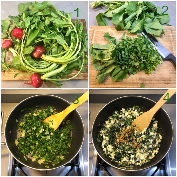 - 1 bağ turp otu veya ıspanak, çiriş otu, maydanoz gibi dilediğiniz yeşillikler