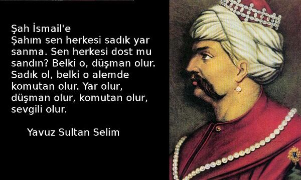 Şah İsmail'e Şahım sen herkesi sadık yar sanma. Sen herkesi dost mu sandın? Belki o, düşman olur. Sadık ol, belki o alemde komutan olur. Yar olur, düşman olur, komutan olur, sevgili olur.