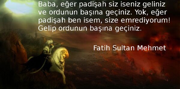 Baba, eğer padişah siz iseniz geliniz ve ordunun başına geçiniz. Yok, eğer padişah ben isem, size emrediyorum! Gelip ordunun başına geçiniz.